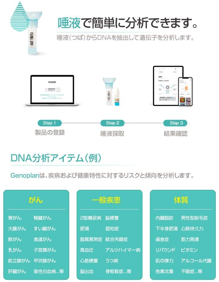 商品名 : ジェノプラン 自己 分析 遺伝子 検査 キット ★