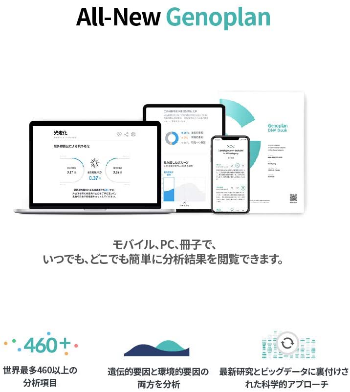 適切な表現型分析は、正確なゲノム予測手順における前提条件と考えます 【ご注意 必ずお読み下さい】 1)本商品より提供される遺伝子分析結果(以下「分析結果」という)は 本商品を利用するお客様が生まれ持つ遺伝的傾向性を統計的に提示するものであり 現在の健康状態を表したものではございません 2)分析結果は返送された本商品をGENOPLANが受付けた日から 別途協議された期限内にGENOPLANが運営するウェブサイトで掲示致します。