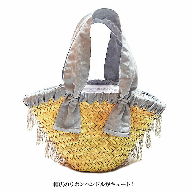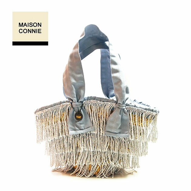 ≪Maison Connie≫ メイソンコニー天然素材 パームツリー リボン持ち手 シルバー フリンジ カゴバッグ (Silver/Grey)【レディース】